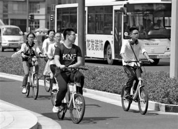 国庆长假,骑共享单车出行是个不错的选择。 记者 徐文杰 摄 |