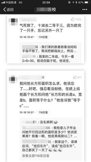 | 家庭作业变家长作业,家长发文抱怨成孩子助教。网络截屏 |