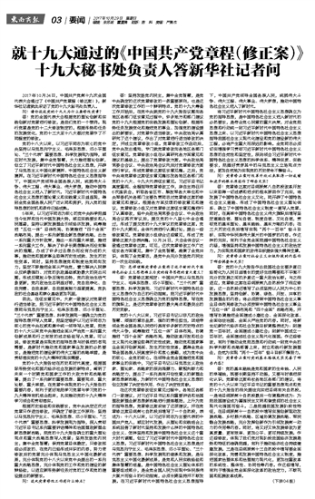 就十九大通过的《中国共产党章程(修正案)》 十九大秘书处负责人答新华社记者问