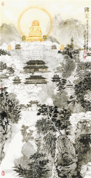 卓鹤君 国画《佛光》 144cmx64cm |