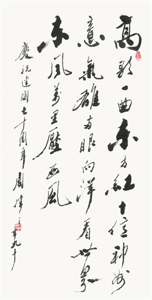 周律之 行书《高歌一曲东方红》 138cmx69cm |