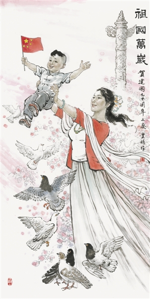 何业琦 国画《祖国万岁》 138cmx69cm |