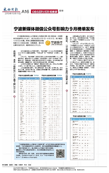 宁波新媒体微信公众号影响力9月榜单发布
