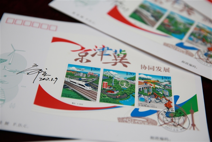 当日,中国邮政发行《京津冀协同发展》特种邮票一套3枚,图案内容分别为交通互联互通、生态联防联治、产业对接协作。