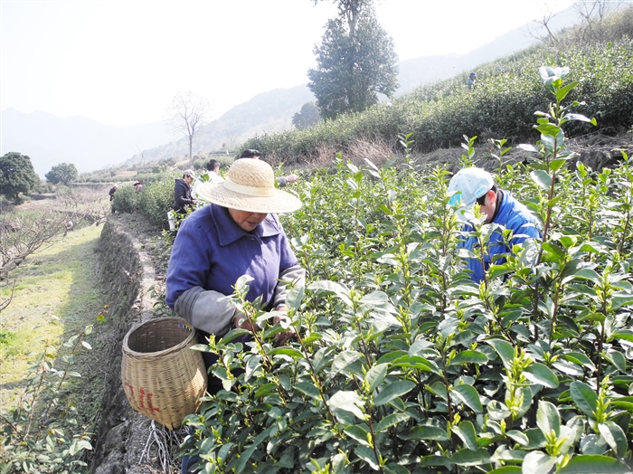 记者 徐华良 通讯员 王礼中 昨天,阳光明媚,春意盎然。在位于西坞街道的雨易茶场名优茶基地,30多名采茶女工正忙碌地开采早茶。 雨易茶场有名优茶面积600亩,其中早茶品种乌牛早15亩。因前段时间冷空气连续来袭,早茶采摘时间比往年推迟了一星期左右。上午9时许,记者登上海拔485米的尚桥门前山,只见采茶女正娴熟地采摘鲜叶,并放进竹篓里。今年的早茶叶势十分旺盛,茶场负责人王建行解释说,去年下半年,他们给名优茶施了菜饼、鸭泥、羊粪等,这些肥料能提高名优茶产量与品质。冷空气影响期间用喷滴灌除霜,因此,乌牛早没有受冻,长势自然比以前好得多。 记者走进制茶车间,环视四周,车间打扫得干干净净,制茶师傅周敏光正在炒制弥勒香茶,一股清香在车间里弥漫。周敏光说,要生产出好茶,必须把好采摘、摊青、杀青、揉捻、炒干、烘干等每道环节,一点不能马虎,香味就会大打折扣。这两天每天可加工弥勒香茶12公斤左右。