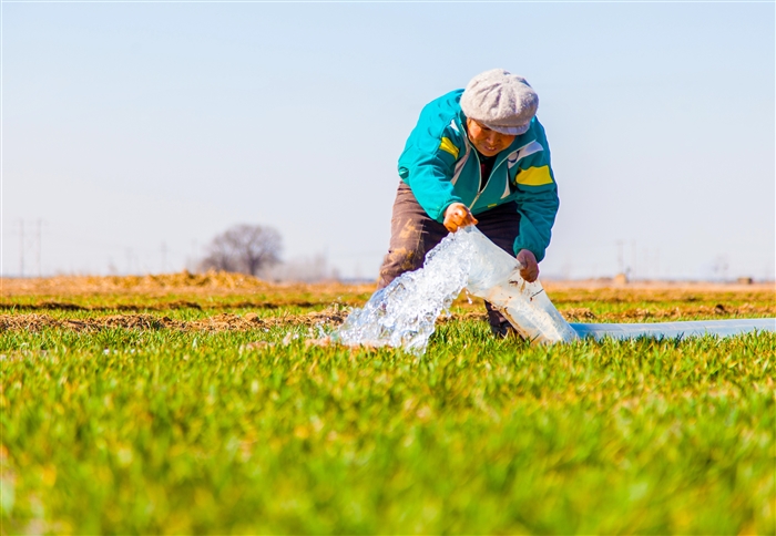3月12日,河北省武邑县四里屯村农民在灌溉冬小麦。