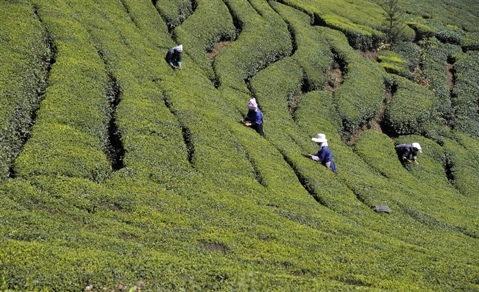 3月22日,茶农在贵州省普安县江西坡镇茶园采摘茶叶。阳春三月,各地春茶陆续进入采摘期,茶农们忙碌着采摘早春茶芽,乡村处处可见农事繁忙的景象。