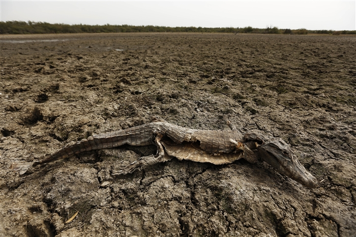 昨天是世界水日。水是生命之源,是世界上最宝贵的资源之一。在水资源日益匮乏的今天,全球各地一片片干涸的大地为生命敲响了警钟。这是2016年6月25日在巴拉圭与阿根廷交界处的皮科马约河,一条死去的鳄鱼趴在干涸的河床上。 新华社发