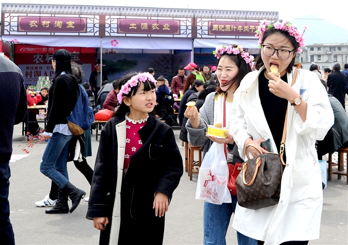 记者 斯玲娅 毛超峥 本报讯 3月25日,萧王庙街道林家村数十里桃花怒放。2017年水蜜桃文化节系列活动之桃源赶集、“宁波湾·桃花源”原创音乐汇、桃林瑜伽在此举行,让游客尽享美食与表演交融的盛宴。 上午8时左右,桃源赶集美食摊位尚未全部就位,已有游客涌入现场等待。上午10时30分左右,出现了第一波游客高峰,现场牛肉干面、生煎包子摊位前围聚了不少人。 中午12时30分,随着欢快活泼的暖场音乐响起,原创音乐汇第一组表演嘉宾I.M乐队登台献唱,现场观众一阵欢呼。大哲、任妙音等歌手演唱了多首脍炙人口的流行歌曲,奉化本土歌手则带来了《早安奉化》等极具奉化特色的音乐。台上表演者不时挥手与观众互动,场面十分热闹。 而在不远处的望果亭处,《三生三世十里桃花》现实版倾情上演。在桃花的映衬下,演员们身穿剧中服装,游客如入剧中场景,纷纷用手机拍下这一幕。来自宁波的吕小姐直夸“桃花醉人,酱烤猪头美味”。当天下午,还有数十名瑜伽爱好者被粉色的桃花世界吸引,彻底放松身心。 据悉,《三生三世十里桃花》演出4月2日、3日还有两场。4月2日、3日下午1时半,小朋友们将奉献舞蹈、器乐表演专场。而桃源赶集活动将持续10余天。趁春光正好,有兴趣的市民和游客可要抓紧时间赏花品美食。 图为桃源赶集现场。 记者 王红雨 摄