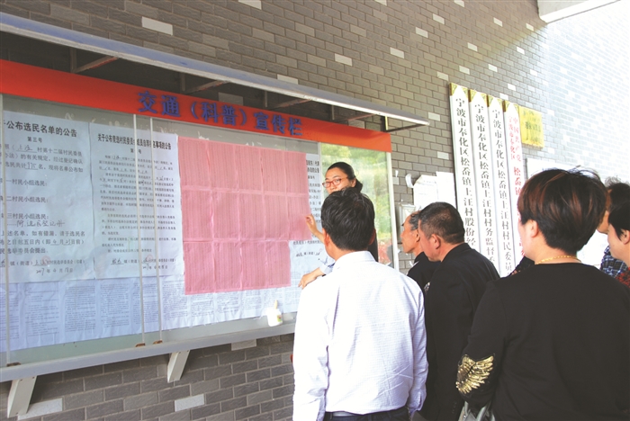 图为上汪村449户975名选民名单正向村民张榜公布。 通讯员 李贤君