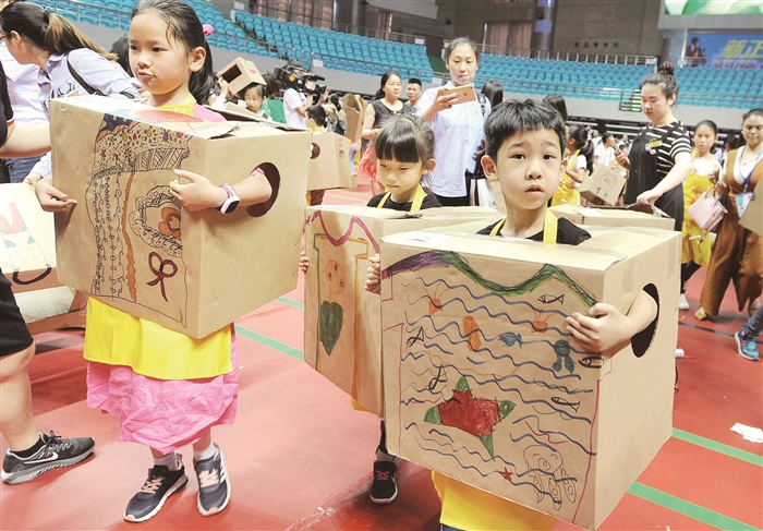 5月20日,奉化中艺美术教育在区体育馆举行“迎六一”大型亲子活动——“艺起嗨”森林狂欢会,共有近千名儿童参加。孩子们通过手中的画笔,和家长们一起在纸箱上创意涂鸦,并穿着自制的纸箱衣服喜迎“六一”儿童节。