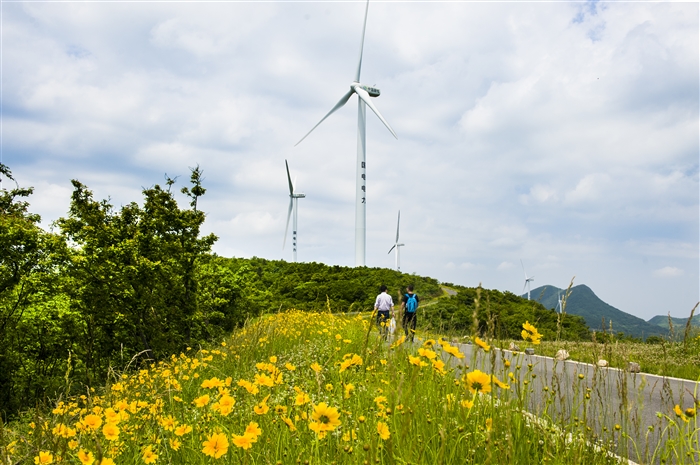 见习记者 景小芳 本报讯 连日来,数以千计的市民趁晴好天气到白岩山赏花漫步,体验“宁波最美风车公路”的美景。从5月中下旬开始,这条风车公路迎来了波斯菊最美花期。 被称为“宁波最美风车公路”的这条路位于奉化与鄞州交界处的白岩山景区,从裘村镇甲岙村出发沿着菩提岭古道可徒步到达。32座巨大的被称为“风车”的风力发电机沿着弯弯的山路,在湛蓝的天空下显得格外宁静美丽。眼下,公路两侧已经逐渐开出黄灿灿的波斯菊。 除了风车、花海、云雾,今后的白岩山景区还会迎来华丽转身。裘村镇甲岙村党支部书记沈小军向记者透露,白岩山景区将分三期进行规划,总投资4700多万元。今年开始的一期规划中将修建一条从甲岙村至白云山山顶的汽车公路,以供统一的旅游大巴通行,同时在今年年底完成18号风机附近平地露营、烧烤、小酒吧等休闲场所的建设。2020年开始的二三期规划,将陆续打造沿花海线小火车、自行车驿站、滑草基地、小木屋、瞭望台等。 图为白岩山景区风车公路。