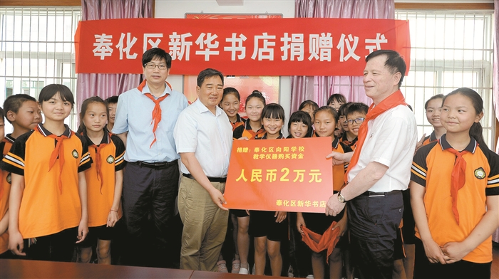 5月23日,在“六一”儿童节来临前夕,奉化新华书店派员来到向阳学校,向该校捐赠2万元用于购买教学仪器。