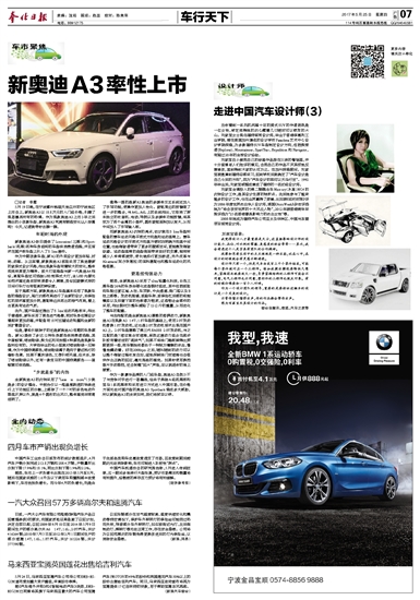记者 李露 5月19日晚,在宁波鄞州钱湖天地召开的宁波地区上市会上,新奥迪A3以18.8万元的入门级价格,引爆了现场嘉宾所有的热情。作为现款奥迪A3上市3年之后推出的小改款车型,新奥迪A3究竟有哪些变化让人惊喜呢?今天,记者就带你去瞧一瞧。 年轻时尚的外观 新款奥迪A3依旧提供了Limousine(三厢)和Sportback(两厢)两种车身结构的车型供消费者选择,并且首次在国产版车型上引入了S line套件。 作为中期改款车型,新A3的外观设计更加年轻、时尚、动感。从正面看,新款奥迪A3前脸采用了奥迪最新的家族式设计风格,相比现款车型有着较大的变化,整体视觉效果更为精神。前大灯组造型与新一代奥迪A4相似,高配车型还可选装LED矩阵式大灯,全LED光源无论档次感还是实际效果都令人满意,类似回旋镖式样的日间行车灯也有很高的辨识度。 至于尾部方面,新款奥迪A3车型基本沿用了现款车型的造型设计,尾灯内部布局进行了全新的设计,后保险杠的层次感更加分明,搭配单边共两出的排气布局,看上去更具有运动气质。 此外,国产车型还推出了S line运动风格版本,相比于普通版,新车采用了黑色进气格栅,同时车身包围设计看起来更加动感,并配备有18吋五辐运动轮圈和全新的后扩散器设计。 但是,最吸引萌妹子的还是新奥迪A3炫酷的车身颜色。新A3提供了多达12种车身颜色供消费者选择,其中星锐黄、喀纳斯绿、探戈红和花剑银4种颜色是现款车型所没有的。大学刚毕业的毛小姐就对喀纳斯绿一见钟情,作为中国特调颜色,喀纳斯绿属于趋向于最近流行的偏粉色调。如果不喜欢绿色,又想引领风骚,没关系,除了喀纳斯绿以外,还有一款炫目的中国特调颜色——星锐黄可供选择。 “少就是多”的内饰 全新奥迪A3的内饰采用了“Less is more”(少就是多)的设计理念。中控台仅以一根晶莹剔透的饰条进行上下功能区的分割,上部除了一个7吋的彩色电动升降显示屏以外,就是4个圆形的出风口,整体感觉非常简洁明了。 值得一提的是新A3奥迪的多媒体交互系统还加入了手写功能,使操作更加人性化。旋钮周边的按键做了进一步的整合,与A4L、A6L上的系统相比,它取消了原本独立的收音机、电话、导航以及多媒体功能按键,将其变为了两个金属的小拨杆,圆形旋钮面积加以放大,从而中间加入了手写输入板。 而新款奥迪A3内饰的亮点,估计就在S line车型所配备的赛车运动风格平底式方向盘和运动座椅上。赛车运动风格设计的平底式方向盘方便时刻明确方向盘中间位置,也给驾驶者带来了更多的腿部空间,更能激发驾驶欲望。运动型座椅的曲型侧面带来良好的支撑,能有效减少人体背部疲劳,使长途旅行更加舒适,另外皮革与Alcantara(阿尔坎塔拉)的面料搭配也和整车运动化的风格很搭。 更高效传递动力 据悉,全新奥迪A3采用了ultra轻量化科技,白色三厢车型26%的车身由硬化成型钢材组成,其中包括前脸向车舱过渡区域、A柱、车顶拱、中央通道、侧门槛以及B柱上部等。发动机舱盖、前副车架、前保险杠后部的吸能横梁以及后窗下面的台板都为铝质,这些铝合金部件的采用,相比钢材为整车减轻了12公斤的重量,从而优化了整车的配重。 与此相配的是全新奥迪A3搭载的澎湃动力,新款奥迪A3在现款A3 1.4T、1.8T车型的基础上,使用2.0T发动机替换1.8T发动机,这也是2.0T发动机首次出现在国产A3上。2.0T车型搭载了第三代EA888 2.0T发动机,与之匹配的是7速双离合变速箱,虽然这套动力组合在起步阶段有着浓浓的“起床气”,如果不将油门踏板踩得比预期更深一些,那车辆始终都处于一种较为慵懒的状态,慢慢地蠕动着。好在2000rpm之后,随叫随到的动力可以让整个驾驶过程收放自如,猛地深踩油门变速箱也会很快作出正确的回应,毫无拖沓的感觉。如果你使用换挡拨片手动降挡,还会附赠“回火”声浪,足以挑逗你的肾上腺素。 作为一款豪华品牌的入门级车型,奥迪A3自然少不了与竞争对手进行一场鏖战,但由于奔驰A级两厢版和宝马1系两厢版均采用进口方式进入中国市场,在价格方面无法对国产型的奥迪A3 Sportback造成多大威胁,所以新奥迪A3的未来如何,我们将拭目以待。