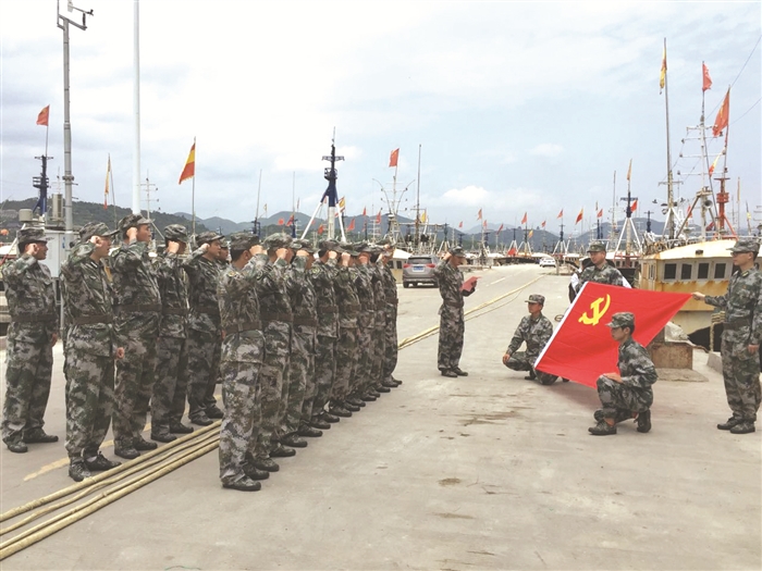 今年东海休渔期从5月1日开始,比往年提早了一个月。近日,莼湖镇利用休渔期,组织海上民兵中的党员干部,在桐照渔港码头深入开展“两学一做”学习教育,再学党章党规,重温入党誓词,以打造思想过硬、政治可靠的海上民兵队伍,助推海上民兵基层党组织建设。