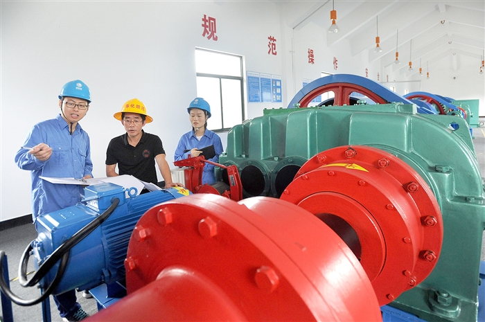 进入梅汛期以来,国网奉化供电公司派出10多支应急小分队,对重点用电单位、大中型水库闸门用电设施进行全面检查,力保汛期供电安全。图为工作人员检查横山水库的用电设备。
