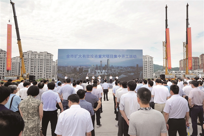 记者 许犇 通讯员 卓建青 本报讯 昨天上午,全省扩大有效投资重大项目集中开工活动举行,省委书记、省人大常委会主任车俊宣布开工,省委副书记、省长袁家军作动员讲话,省委副书记、市委书记唐一军主持仪式。 当天,宁波分会场活动在溪口镇生态旅游小镇一期项目现场同步举行,市委副书记、市长裘东耀作动员讲话并宣布开工,市委常委、常务副市长宋越舜主持仪式,区委书记高浩孟作表态发言。 据悉,宁波市共有102个项目参加宁波分会场集中开工活动,总投资1356亿元,年度投资300亿元,20亿元以上大项目共22个。其中55个项目参加全省集中开工活动,总投资836亿元,年度投资187亿元。 上半年,我区累计完成有效投资104.6亿元,同比增长10.7%,计划全年增幅不低于13.5%。昨天,我区共有8个项目参加本次集中开工活动,总投资达104.6亿元,年度投资27.3亿元。分别为奉化中学附锦溪书院迁建工程、红易仓储(宁波)物流中心项目、邻里中心项目、东郡尚都北侧1号地块项目、溪口生态旅游小镇项目一期、惠政5号地块开发项目、深国际宁波综合物流港项目、宁波奉化城市转型示范区启动区市政道路工程。 裘东耀在动员讲话中指出,全省每年定期举行集中开工活动,就是要营造一心一意谋项目、全力以赴促发展的态势。宁波要深入贯彻落实好省委省政府扩大有效投资、推进重大项目建设的决策部署,通过本次集中开工活动,全面推进重大项目建设进度,大力营造抓项目、促项目的好氛围,为“名城名都”建设奠定扎实基础。 高浩孟表示,此次全市重大项目集中开工活动设在奉化,是市委市政府对奉化的关心和鞭策,奉化要以此为契机,全力落实“大脚板走一线、小分队破难题”专项行动,围绕项目优环境,围绕项目抓落实,全面打赢有效投资攻坚战,坚决完成各项目标任务,努力为宁波“名城名都”建设增添奉化动力。 宁波市四套班子领导、区四套班子领导等参加活动。活动中,有关区县(市)、管委会主要负责人依次向宁波市委市政府报告情况。 图为开工仪式现场。 记者 王红雨