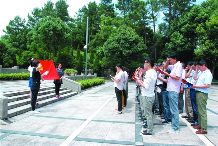 □通讯员 李贤君 邬平 本报讯 近日,松岙镇“两新”组织党建联合体组织汇丰食品、松欣食品等7家企业支部44名党员,在6名党建指导员的带领下,赴四眀山梁弄革命根据地开展党员组织生活日活动,旨在提高企业党员参加组织生活日的积极性和主动性,进一步加强企业党建水平。 “让我们参观红色基地、重温入党誓词,震撼和洗礼了心灵,坚定了政治信仰。”宁波松欣食品有限公司一名党员说。大家表态,在以后的工作中,要以一名优秀共产党员的标准严格要求自己,不断加强党性修养,坚定理想信念,以良好的精神状态和扎实的工作作风推动企业党建工作再上新台阶。 图为党员们正在重温入党誓词。