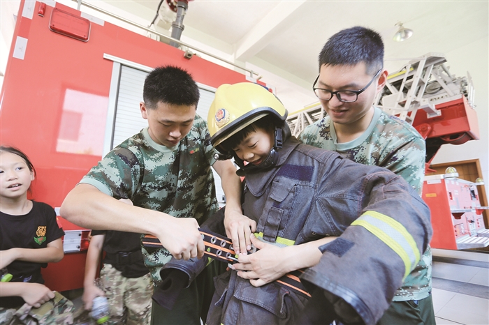 昨天,“争做家乡消防小卫士”军(警)校夏令营活动在区公安分局消防大队开幕。