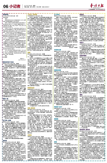 锦屏中心小学405班小记者 汪颖怡 星期天,我到乡下的朋友家去做客。因为已经好几年没见了,一见面我们就拥抱在一起。 她说她一会儿要去割草,问我去不去,我连声答应了。就这样,我也跟着她来到了割草的地方,放眼望去田野里一片浓郁,金黄的油菜花谢了,结出了密密的嫩荚;黑白相间的蚕豆花谢了,长出了小指头似的豆荚;雪白的萝卜花谢了,结出了一蓬蓬的种子。麦田金灿灿的,像星空穿上了耀眼的新装。每根麦秆都擎起了丰满的穗儿,那齐刷刷的麦芒,犹如乐谱上的残条,一个麦穗就是一个跳动的音符。 湖畔边上的草又肥又嫩,只要用手轻轻一拉就能拔下来,竹篮很快就装满了。小伙伴们一起在草地上玩耍,有的翻跟头,有的在摔跤比赛。我躺在草地上,感受阳光的温暖,草地完全就是一片天然的运动场。 时间不知不觉过了很久,我感到有些口干舌燥,我的朋友走过来,伸出手,给了我几根从地上拔来的草。她跟我说这是“葇葇针”可以吃的。她说剥开叶片,把葇穗儿连同茎轻轻抽出,把茎放进嘴里嚼嚼。我照着她说的做,放进嘴中嚼嚼,真的有一股甘甜清凉的滋味很快从舌尖直沁肺腑。 日落了该回家了,我真舍不得这美丽、独特、迷人的田园风景呀!下次我还要来细细游赏一番。 指导老师 陈雪赞