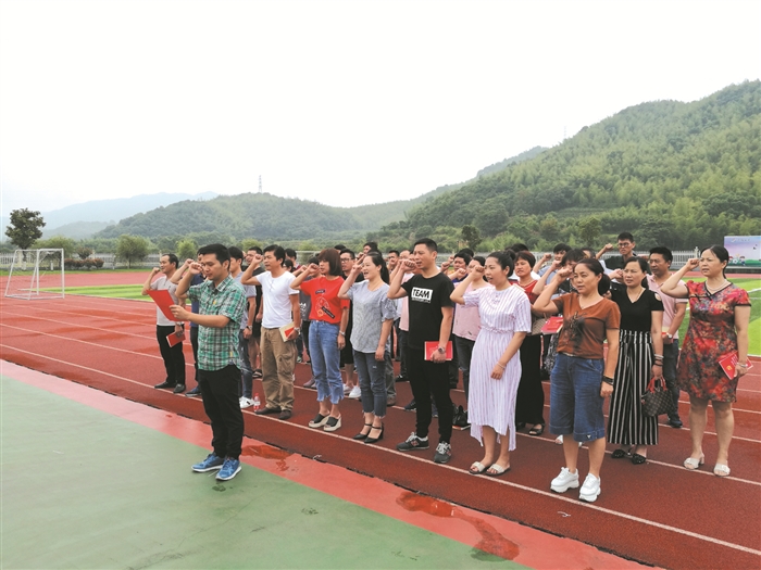 □通讯员 庄林川 王林威 本报讯 近日,莼湖镇组织50余位新进党员听了一堂题为《开启全面从严治党新征程——十八届六中全会精神解读》的党课。 课堂上,区委党校讲师江长军结合十八届六中全会精神,通过鲜活的事例,多方面解读如何作好一名合格的共产党员。课后,新进党员们在党旗下庄严宣誓,宣誓过后还参观了国际灾童教养院史料陈列馆,让新党员更加坚定了为共产主义事业奋斗终身的理想信念。 “这是一次意义深刻的学习教育。”新党员们纷纷如是表示,不忘初心,争做合格党员。 据了解,此次培训,是该镇深入推进“两学一做”学习教育活动的一项内容,旨在帮助新党员进一步加深对党的理论知识和当前形势的了解,提高党员意识和党性观念,增强宗旨意识,确保在以后的工作中能充分发挥党员的先锋模范作用,增强以实际行动践行对党承诺的自觉性和坚定性。 图为党员宣誓现场。