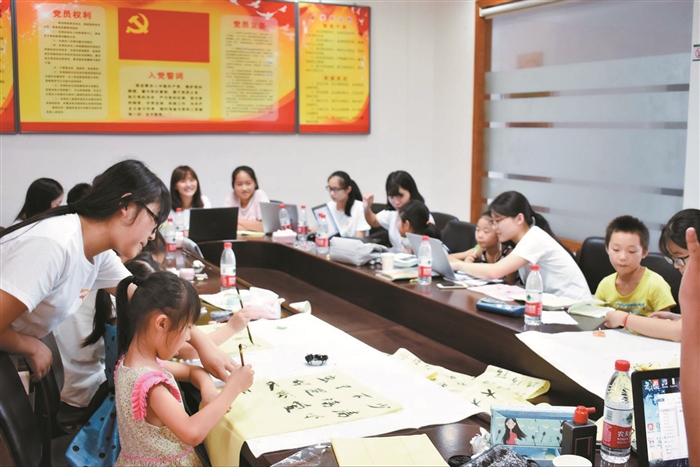 本报讯 近日,金峨村、蒋家池头村、力邦社区等7个“假日学校”相继开班,由街道干部和宁波大学、宁波理工学院组成的志愿者教师团队因地制宜开展特色教育,与孩子们共同欢度暑期。