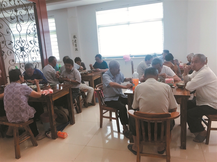 □通讯员 缪旭娜 本报讯 “噼里啪啦,噼里啪啦……”近日,在阵阵热闹的鞭炮声中,西坞街道蒋家池头村老年食堂正式开业。开张第一天,就吸引了村里30多位老人前来试吃。 水灼基围虾、红烧小黄鱼、肉末茄子、油焖茭白,番茄蛋花汤,饭桌上,荤素搭配的可口饭菜,四个人围坐成一桌,看看电视,唠唠家常,场面十分温馨。 据悉,该村老年食堂为村里80岁以上的老人提供午餐和晚餐,其中90岁以上的老人每人每餐收费3元,80岁以上老人每人每餐收费4元。村里的70位妇女志愿者负责食堂的运营,采用轮班制管理,每天安排2人,同时志愿者还为行动不便的老人提供送餐到家的服务。 “以后吃饭算是有着落了,一个人生活,为了方便省事,我每次都是做一顿饭吃好几餐,这里清清爽爽,小菜也搭配得很好,我很喜欢吃。”80岁的独居老人张大爷一边抿着小酒,一边向笔者开心地说。 老人们在村老年食堂用餐 通讯员 沈凯波 摄