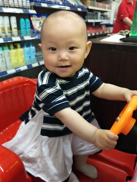 小名:七七 年龄:9个月 童言童语 我会叫爸爸啦 我叫七七,现在9个月多了,还不会说话,每天只会咿呀咿呀。不过我会叫爸爸啦,为此妈妈很不高兴,看我叫爸爸就老是把我推给爸爸抱,可是我不要爸爸,我要妈妈抱。 “长大了”的我 我最喜欢去楼下的小超市了,而我最爱的是超市电动摇摇车。从开始的坐不稳到现在不用双手扶,我也能坐得稳稳当当的啦,从以前的一声不响到现在我也会跟着音乐一起唱一起摇屁股啦,妈妈说我“长大了”。 喜欢哥哥的我 我最喜欢和哥哥一起玩了。因为哥哥戴着眼镜,我最喜欢摘他眼镜玩,摘了以后摸摸他的脸,摸摸这摸摸那,有时候还亲他一下。他也会不厌其烦地和我玩。