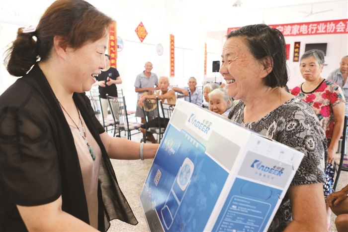 7月25日,经宁波市经信委牵线,宁波市家电行业协会到大堰镇张家村,向村里的老年人赠送了30台落地电风扇,在炎炎夏日,为老人们送上了一份清凉。