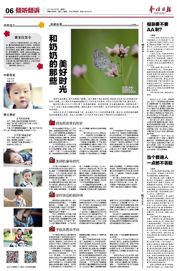 采访对象:木子 采访方式:面谈 采访时间:8月3日 前两天朋友聚会,我们闲聊起了微博上“孩子暑假不愿去奶奶家,竟是因为没有WiFi和智能手机”的热门话题。众人都在叽叽喳喳地感慨电子产品对孩子的影响,只有木子在旁沉默不语,暗自发呆。 起初我们都以为木子只是太累了,但是她的情绪一直没有好转,而且越来越低落。我跟朋友换了个位子,坐到了她身边想要安慰她。她低头靠在了我的肩膀上,低声说即使没有WiFi和手机,她也想回奶奶家。 说完这句话,木子的眼里溢满了泪。我知道木子从小在老家跟着长辈一起生活,但是没想到她跟奶奶的感情那么深厚。在众人的安慰下,木子低声向我们诉说了那些回不去的最好时光…… 日有所思夜有所梦 木子说,她最近不知怎么了,天天梦到一些很莫名其妙的事。很久不见的人,从来不曾想的事,或者是根本不可能再发生的事情,都一一出现在她的梦里,光怪陆离,纠缠不清。她有点不安,不知道这是所谓的“事前预兆”,或者,梦在让她回忆些什么…… 木子的奶奶是在今年年初去世的,自从奶奶去世后几天,很少做梦的木子开始频繁陷入梦境。昨晚,木子又做了一个梦,一个让她无法言语的梦。她居然梦到奶奶在葬礼上死而复生,木子跟着大家却依旧在旁哭得很伤心。 “我不明白自己为什么会做这么一个……荒诞的梦,也无法理解大家,也包括我,为什么在奶奶死而复生之后依旧哭得那么痛彻心扉?这明明是一件很高兴的事情啊!”木子说,她当时是哭着醒来的,醒来之后就久久的不能入睡。木子从来没梦到过去世了的人,她不明白这是代表着什么?也不知道为什么会做这种梦?因为那真实梦境,木子差点都要忘记了残酷的现实。 木子的哥哥听木子说完这个梦境之后,跟木子说:“那是因为你跟奶奶最亲,所以你会梦到她。”木子说她知道哥哥是在抱怨她在奶奶的葬礼上表现得那么冷静,冷静得根本就不像是在奶奶膝下长大的孩子。“其实我只是想得开了点,或者我只是爱逃避了点,所以我才会在葬礼上表现得那么冷静。”或许就是因为太冷静,所以木子才需要一些发泄情绪的渠道,比如那个光怪陆离的梦…… 美好的童年时代 木子很小的时候就听大人们讲,木子奶奶是出生在书香之家的大小姐,她是一个非常聪明智慧、美丽贤淑的女人。木子小的时候,周边的人都说她遗传了奶奶的气质和美丽,木子每每都会暗自窃喜好一阵。 因为父母工作繁忙,木子在3岁的时候就被带回农村老家,跟爷爷奶奶一起生活。童年的记忆是木子人生中最美好的时光。白天,奶奶坐在院子里,倚着白墙纳鞋底,一手拿着鞋底,一手拿着针,针扎进去,又从另一面穿过去,把线拉出来,再从另一面扎,反面拉出来,反复这样做。木子看着好玩,就拿个小板凳坐在奶奶旁边,想学着奶奶的样子,却没想到把线团弄得一团糟,这时候,奶奶就会慈祥地盯着木子笑骂一声“捣蛋鬼”,然后停下手中的活来整理这些线团。 木子最爱奶奶给她讲故事了。奶奶的神情永远跟着故事剧情走,有时讲着讲着,奶奶就会情不自禁地摇头晃脑,手还要舞动一下,常常把木子惹得哈哈笑。其实奶奶唱歌也特别动听,仰着头听奶奶唱歌的木子总会想,奶奶肯定是一个儿歌曲库,不然她怎么知道那么多的儿歌。 到了晚上,奶奶依旧停不下来。白炽灯下,奶奶辛勤的手依旧挥动着,来来回回,时不时用针头挠一下头皮。每一天都得木子喊无数遍,奶奶才会扭动一下脖子,把针线收好,唱歌哄木子睡觉。 渐行渐远的祖孙俩 美好的时光总是过得飞快。幼儿园那条放学回家的路上,一个步履蹒跚的老人一手拖着一小孩,一手拿钱买肉包的场景,只是成了记忆里的一朵浪花,那一声一声的“木子”,也渐渐模糊地已经听不清楚了…… 因为上学等原因,木子被父母接到了奉化的家里。从最开始的哭闹,不肯离开奶奶,到被繁重的学业压榨得挤不出时间思念,木子经历了每一个小孩子最健忘的事情。上了初中的木子开始变得不愿与人交流,即使是难得见面的奶奶,木子也只会酷酷地喊一声“奶奶”,然后就窝进自己的空间,徒留奶奶落寞的表情。 奶奶不知道自己的孙女是怎么了,她开始小心翼翼地用自己的方式来讨好这个自己最疼爱的孙女。于是,许久未用的柴火灶又开始了它的使命,只因为一年来几趟的孙女爱吃那煨得喷喷香的白粥;儿子女儿买来的香蕉也被严严实实地藏在柜子里,谁都不许吃,因为奶奶要把它们藏给最心爱的孙女。但是那藏了半个月、一个月,自己都舍不得吃的香蕉和苹果,即使再满心欢喜地捧出来,也得不到孙女的笑脸,还被木子嫌弃为什么要把水果藏到半烂才吃。 如今的木子,回想起那段与奶奶渐行渐远的日子,后悔地只掉眼泪,她说如果再给她一次机会,即使她喜欢吃新鲜的,也一定会把这些奶奶辛苦藏起来的水果吃掉,因为她知道这样,奶奶才会高兴…… 子欲养而亲不待 木子曾经怀疑过自己是否真的有些莫名的怪能力,她的妈妈也说木子总会在家里有点什么事情的时候打电话过来。就像那天,礼拜三的中午,其实那天木子很忙,忙得连吃午饭的时间都没有,但是她却在一项又一项的工作间隙,想起了打电话回家。 刚接通电话,木子爸爸就说,“你差不多这几天该回老家了……”木子心头一惊,果然,一个小时之后,木子妈妈打电话让木子以最快的速度赶回家。木子当时完全懵了,根本就不知道自己该做些什么,只听到
