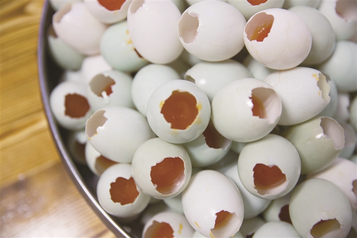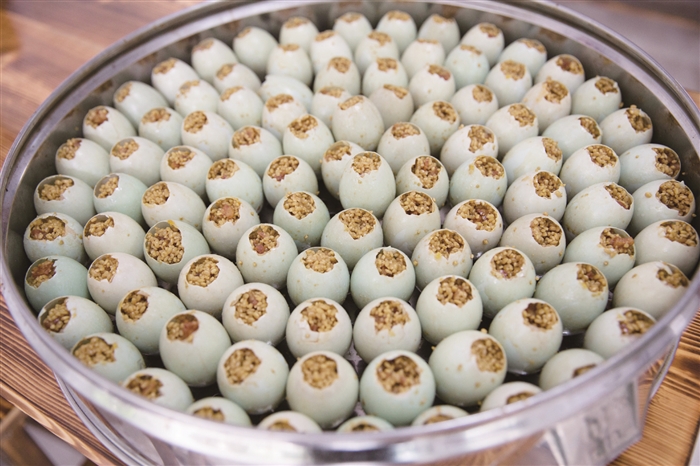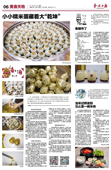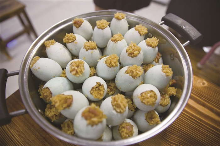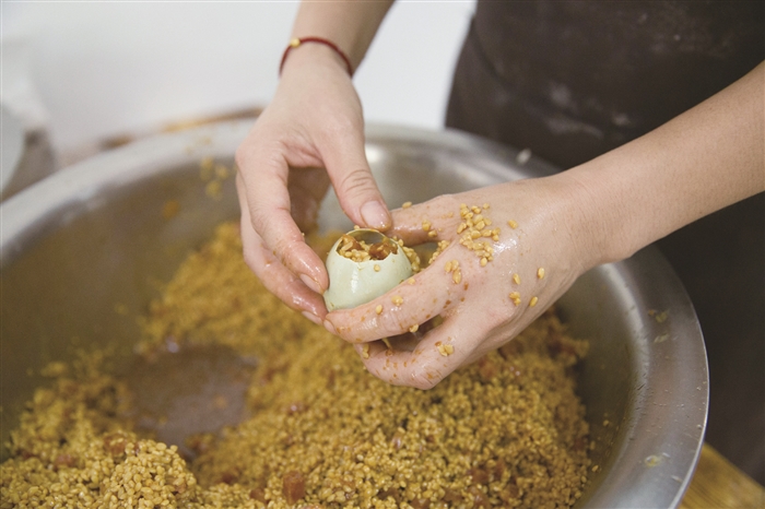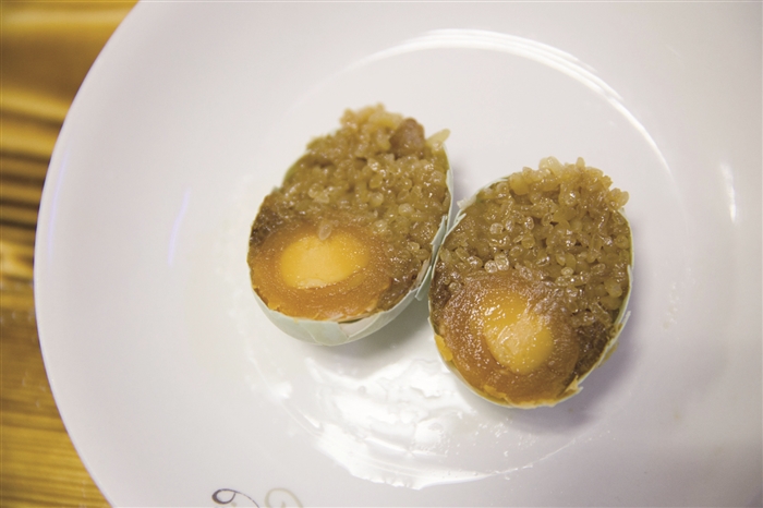等待开蒸的糯米蛋 裹上金纸的糯米蛋 我一直觉得鸡蛋是一个万能的食材,不仅是营养早餐的必备食物,而且,任何食物只要加了它就会锦上添花。平日早上太忙没时间做复杂的早餐时,煮鸡蛋就成了最便利的方法。不过,也有人无法忍受手拿一整个儿白煮蛋干啃的吃法,这时候来一颗变着花样的糯米蛋就成了最好的选择。 李露 糯米拍档咸鸭蛋 隔夜浸泡的糯米散发着阵阵清香,澄黄的咸鸭蛋油溢出在洁白的蛋壳上,而这些统统包裹在一颗小小的蛋中。咬上一口,满嘴留香,惊喜的是还有几块腊肉蘸着几滴美味鲜酱油的香。为了不让一丝美味溜走,最后用金色锡纸牢牢包住,蛋蛋们顿时金光四射,这就是传说中的糯米蛋。 很多吃货告诉我,最近他们的朋友圈被一个神奇的蛋刷屏了,它既流淌着金黄的咸鸭蛋油,又富含晶莹剔透的糯米,满口糯香。“我在朋友圈看到糯米蛋的时候还不以为然,但入口时真的有点吃惊,太好吃了。”吃货小单说,糯米蛋从外表看不足为奇,但打开后内有“乾坤”,糯米加咸鸭蛋的新奇组合,既有糯米的软香,又有咸鸭蛋的咸香,还有腊肉的腊香,味道特别赞。 据了解,将鸭蛋和糯米结合在一起的吃法最初从网络开始流传,一开始只是简单地将咸蛋黄和糯米饭相结合,但是很快,市面上又出现了不少创意十足的版本,添加的材料也越来越丰富。 母爱创造的商机 居敬小学旁有家叫“觅食溏”的美食店铺,主打菜品——黄金糯米蛋深受食客的喜爱,在今年4月的“桃源赶集”和6月的“阿拉非遗汇”上,都卖出了日均千个的好业绩。 谈起糯米蛋的创业史,店主汪春味直言,是母爱创造了商机。2015年的冬天,汪春味和刘亚红这一对情同姐妹的好闺蜜,为了就近照顾在居敬小学读书的孩子,选择在长岭公园旁开了一家专卖手工饺子的美食店。 那时,店铺生意虽不错,但是与其他店比起来,并没有什么惹眼的特色。偶然间,汪春味在网上看到了糯米蛋的制作教程,觉得很新鲜很神奇,便自己动手尝试,想做给女儿吃。糯米蛋的做法说起来也简单,在生的咸鸭蛋上敲开一个口子,流掉蛋白只剩蛋黄,塞入糯米及腊肠、青豆、胡萝卜等其他材料,蒸熟即可。 汪春味丝毫没料到自己做的糯米蛋一出锅就得到了家人的一致好评,尤其是女儿。她不仅一口气连吃了好几个,还把它带去了学校,分享给了小伙伴,惹得班里的小伙伴回家纷纷向各自的妈妈念叨:“要吃一个里面有糯米,还有蛋黄的,很好吃的蛋。” 小朋友对糯米蛋的喜爱,让汪春味嗅到了商机,产生了上微信朋友圈兜售的想法。于是,她着手尝试,当天晚上就忙活出50个糯米蛋,一放到朋友圈吆喝,立马就全部销售一空。这下,她更加有了信心,特意去定制了一个大蒸笼,开始在店铺里售卖。 喜宴里的新主角 “我现在微信也卖,店铺也卖,一天差不多能卖100来个吧。因为当天制作当天销售,有时还会出现供不应求的情况。”汪春味说,做糯米蛋工序繁琐,而且都是细工活,一般情况下做100个糯米蛋得花上2个多小时。 除了微信和店铺售卖,汪春味也接喜宴的单子。“金纸包裹着的糯米蛋,好吃好看,而且寓意‘团团圆圆’,所以近年来,蛮多婚宴上出现了它的身影。” 市民沈先生平时很少吃外面的小吃,上周五,他在绍兴朋友家的一场婚宴上偶然吃到这种糯米蛋,觉得味道很好,就想着把它带到自己10月的婚宴上去。 据了解,糯米蛋因为造型别致,里面含有蛋黄、腊肠、青豆等,口感丰富,在婚宴上非常受年轻一辈的欢迎。“老式婚宴菜吃腻了,大家都想要尝个鲜。”汪春味说,她在考虑开发新口味,让糯米蛋成为一种更受欢迎的时尚菜品。 去掉蛋白的咸鸭蛋 往咸鸭蛋里塞入糯米 蒸好的糯米蛋 切开的糯米蛋 糯米蛋