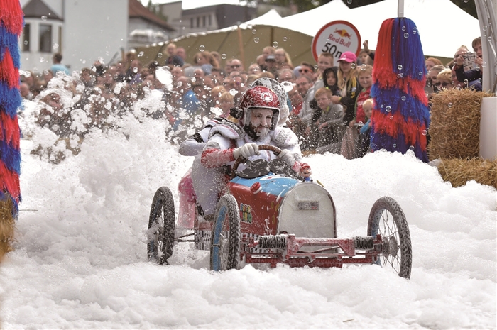 9月10日,在比利时的克莱斯贝亨,比赛选手参加“皂飞车”大赛。