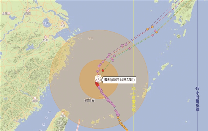 记者 徐华良 通讯员 沈绿草 本报讯 昨天下午,受今年第18号台风“泰利”影响,我区风雨交加,局部出现暴雨和8级大风。今天,“泰利”逐渐远离我区,影响减弱。 昨天中午11时55分,区气象台将台风蓝色预警提升到黄色预警。昨天下午1时,台风“泰利”加强为超强台风,风力达到16级;20时减弱为强台风级,昨天夜里到今天沿浙江近海北上转向。 据区气象台副台长郑健介绍,台风“泰利”环流紧密,移动速度十分缓慢,降雨分布不均,昨天下午局部地区短时出现暴雨,裘村、尚田龚原、溪口商量岗等地出现8级大风,昨天夜里局部地区降雨比较大。从昨天上午8时至晚上8时,全区面雨量22.8毫米,最大西坞里岙水库,降雨量66毫米。今天我区中到大雨,最大风力内陆7至9级,沿海地区9至11级,象山港10至12级。明天多云到阴,局部阵雨。 台风“泰利”预报路径图(9月14日22时) (据浙江省水利厅)