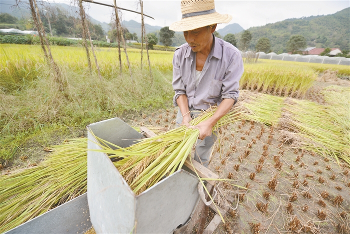 图为大堰镇柏坑村村民正在抢收。