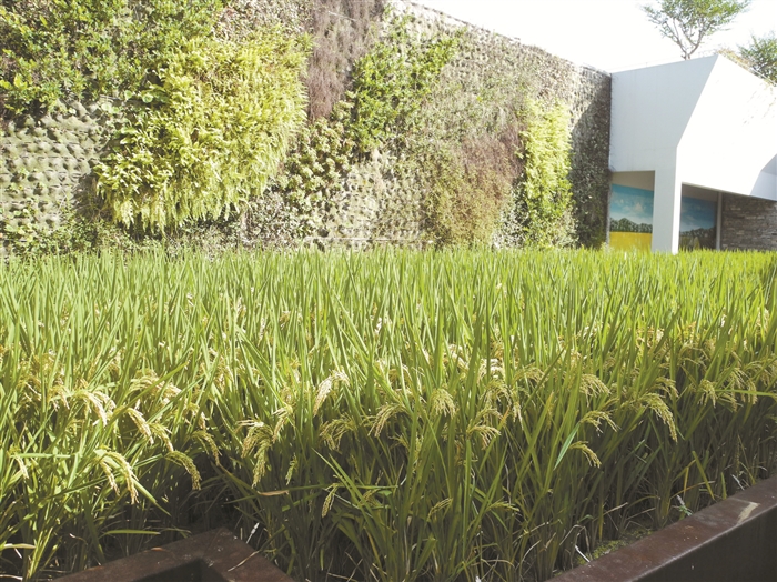 日前,记者来到宁波滕头案例馆,惊奇地发现种在二楼的创意单季稻被沉甸甸的稻穗压弯了腰,丰收已成定局。这一美景让前来观赏的游客着了迷。