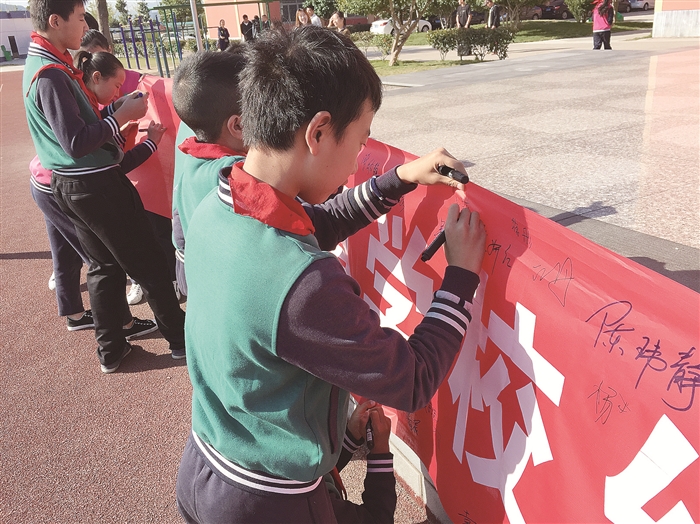 通讯员 丁涌潮 近日,一场“共建绿色网络同创文明校园”的集体签名承诺活动在宁波求真学校举行,师生们依次在活动横幅上庄重地签下自己的姓名。 在推进绿色网络文明进校园的活动中,宁波求真学校还邀请了名师来校作讲座,校园内悬挂绿色网络文明的宣传标语,每班刊出主题黑板报组织主题班会,举行集体宣誓活动,以及小记者征文等系列活动。这一系列活动让同学们更深刻地感受到网络虽然是人们学习知识、获取信息、交流思想、开发潜能、休闲娱乐的重要平台,但是网络也是一把“双刃剑”,特别是对青少年的负面影响不容低估,作为新一代的少年一定要自觉抵制网络上不健康的思想和信息。 宁波求真学校绿色文明网络活动签名现场