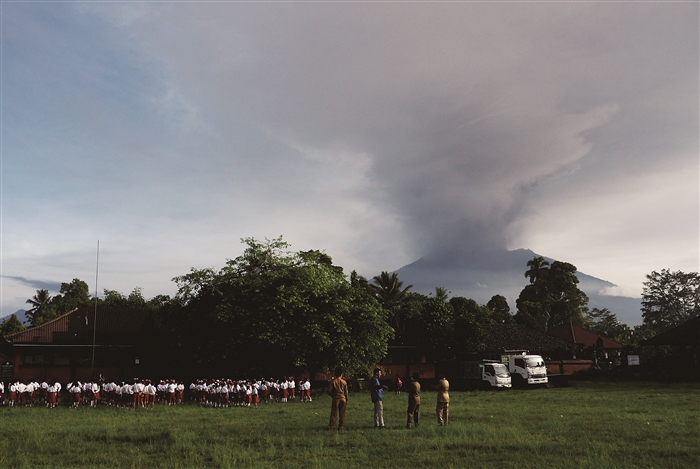 这是11月27日在印度尼西亚巴厘岛拍摄的喷发的阿贡火山。