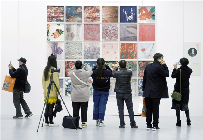 12月5日,参观者在成果展上欣赏摄影作品《胡同花卉图鉴》。