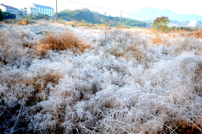 记者 徐华良 通讯员 沈绿草 本报讯 这次强冷空气威力不小。昨天,奉城首次出现今年入冬以来晨霜如银的景观,溪口中峰最低气温达到-5.1℃,是入冬以来最寒冷的一天。 前天,北方一股强冷空气把奉城送入了气象学定义上的冬季,气温一路下滑。昨天,溪口升纲、剡源等地的最低气温降到了-3.4℃,市区最低气温降到了0℃。记者昨天一早在溪口、萧王庙一带采访时看到,大地上覆盖着一层厚厚的浓霜,犹如一场“冬雪”,成为田野上一道亮丽的风景。 据区气象台气象预报员沈艳介绍,眼下北方一股冷空气蓄势待发,8日开始气温又将明显下降,到9日山区最低气温可达-2℃至-4℃。值得一提的是,未来一段时间天气晴好,早晚寒风刺骨,到白天气温会缓慢回升。这段时间因冷空气一波未平一波又起,市民需注意防冻保暖。 图为昨日早上河头村河道边结霜的植物一角。王红雨 摄