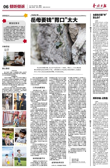 □西河 沈先生今年28岁,上半年在朋友的介绍下,他和一个女孩子谈起了恋爱。女朋友比沈先生小3岁,长得白白净净,有着小女生的娇气和天真。刚开始恋爱的时候,面对女朋友软软糯糯的撒娇动作和偶尔的小脾气,沈先生觉得非常受用。可是随着恋爱时间久了,女朋友发脾气的频率越来越高,用现在流行的话说就是越来越“作”,动不动就闹分手,微信回得慢了要闹,约会稍微迟到一点要闹,忘记了节日礼物更是要闹。每次沈先生都要哄好几天,买各种各样的礼物才能消气,沈先生觉得这样太累了,女孩子偶尔发发脾气还是可以接受的,但是三天两头这样,自己实在是没有这个精力去应付。 对于沈先生认为女朋友太“作”的问题,大家怎么看呢? “小幸运”(网友):作为女生,我也觉得女生不能太作,一次两次还能忍,每次都这样作,别人看腻了不劝了,男友也会觉得非常没面子。男生可以宠着你顺着你,但是凡事都要有个度,爱一个人,确实需要妥协、退让、包容、照顾,但是一味地作,不知分寸,谁都有累的时候,收起一些没必要的无理取闹,爱情才会更加美好。 骆先生(已婚):首先,问自己是否爱她,再者她是否真爱你?若是真爱,发脾气就是在乎,平淡生活中也是需要偶尔的吵闹来调剂的;不过凡事需沟通,好好跟她说一下你的想法和感受,看她能不能收敛一下自己的脾气,如果沟通无效,还是老样子,你又实在无法忍受,那就分手。 仇小姐(未婚):我以前也爱发脾气,每次男朋友都忍着,弄得后来自己都觉得不好意思了。然后他在我不生气的时候耐心和我沟通,告诉我这样不好等等,我也会自觉地去改变自己。现在我身边的朋友都说我的脾气好了很多。建议在女朋友能冷静和你说话的时候和她谈谈,不要太多的指责,告诉她你的感受和这样的后果,她自己会做出判断的。