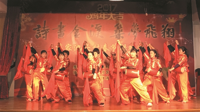 □通讯员 缪旭娜 沈凯波 本报讯 近日,西坞街道孔峙村女子舞龙队来到蒋家池头村学习交流,双方联袂演出了舞龙《龙腾狮跃》、腰鼓《喜事多》、扇子舞《祝福祖国》等节目,观众赞不绝口。 据悉,蒋家池头村女子腰鼓队成立于2008年,女子舞龙队成立于2012年,这两支队伍经常受邀去西坞街道各村表演,凭着多年来的经验,已形成了独具特色的表演风格。孔峙村女子舞龙队一位队员介绍,她们今年刚刚成立舞龙队,这次来蒋家池头交流学习,为日后的进步和提升打下了基础。 随后,双方就提升文化软实力、扩大文化影响力、开展基层文化活动等方面进行了深入交流。 图为腰鼓表演《喜事多》。