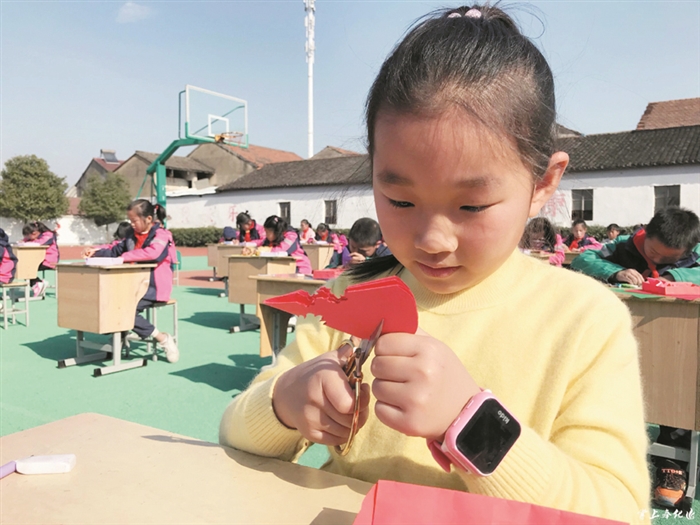 方桥小学学生们在体验剪纸带来的乐趣