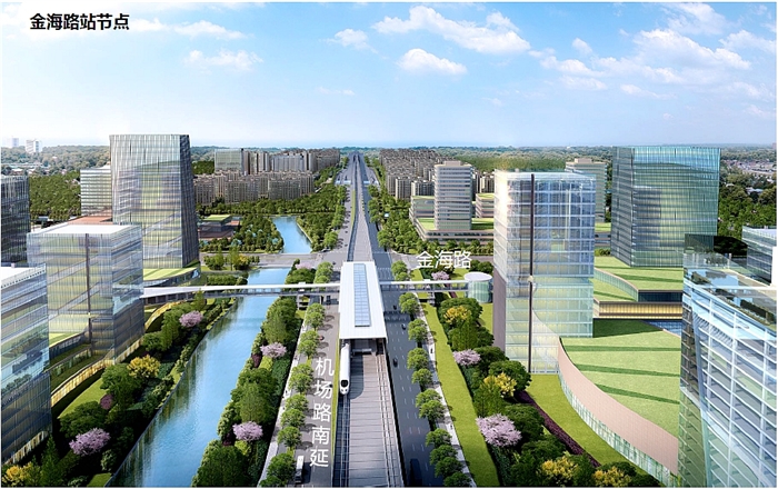 记者 斯玲娅 通讯员 毛亚 本报讯 1月19日上午,宁波市规划局奉化分局会同相关部门组织召开《宁波市机场路南延(岳林东路—宝化路)道路工程规划》评审会,方案顺利通过评审。 机场快速路南延和宁奉城际线的建设,有利于构建奉化与宁波中心城区间的双快交通体系,推动区域一体化发展。原先的机场路南延工程近期立项仅至岳林东路,导致岳林东路以南段快速路道路规划方案缺失。随着宁波行政区划的调整,迫切需要提前规划岳林东路以南段快速路预留方案,以及轨道施工后近期道路路面的恢复方案。本规划项目意在促使奉化主城区形成东环路—四明路—西环路—宝化路的环形快速路网,推进与宁波中心城区方向联系的快速交通廊道建设,融入宁波快速路网系统。 本工程规划范围北起岳林东路,南至宝化路,总长约2.7公里。其中岳林东路至湖桥东路段与轨道宁奉线共建,包括轨道金海路站。规划以结合轨道宁奉线建设,预留远期奉化至宁海市域轨道及岳林东路以南段远期快速路实施条件为研究重点,并落实近期道路修复实施方案,减少未来废弃工程。 机场路南延与主次干道相交的路口进口道至少满足五车道的要求。部分转向需求较大的路口,满足五车道的要求,如湖桥东路、宝化路。全线共布置4对公交停靠站,其中岳林东路至湖桥东路段站间距为0.7公里,湖桥东路至宝化路路段站间距为1.2公里。 图为金海路站节点鸟瞰效果图