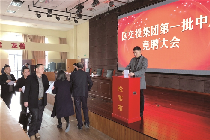 通讯员 方静 本报讯 2017年12月26日,在区交投集团下属公司奉化公交举行2017年集团第一批中层干部竞聘大会。大会由集团党委书记、董事长、总经理吴波主持,集团符合竞聘条件的全体人员参加会议。 本次选聘以“公平、公开、公正”为原则,采取组织推荐和个人自荐相结合的方式,竞争角逐9个中层干部岗位。会上,吴波宣读了《宁波市奉化区交通投资发展集团有限公司第一批中层干部竞聘方案》,并提出各个岗位的竞聘条件细则。竞聘者根据岗位要求,结合自身实际情况进行填表报名。经集团班子研究讨论后,全体参会人员对竞聘者进行了民主投票。最终推选出9名候选人。 随着第一批中层干部竞聘工作的结束,集团同时积极准备第二批竞聘工作的前期准备。进一步深化干部人事制度改革,从而促进集团和员工的共同发展。 竞聘现场