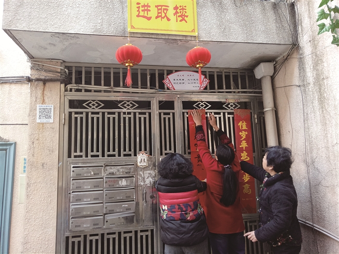 近日,岳林街道民主社区组织居民一起挂灯笼贴春联扮靓楼道,张贴温馨提示告知平安过节注意事项,一起过个温馨年。
