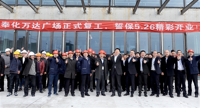 2月24日9时58分,奉化万达广场项目举行新春复工仪式。奉化万达广场项目总占地约15.5万平方米,总建筑面积近50万平方米,总投资约35亿元,集IMAX影院、购物、餐饮、儿童娱乐、电玩、超市、健身等于一体。整个项目以购物中心为核心,同时规划了商务办公、风情商业步行街、五星级酒店、高端住宅等业态和景观大道、南北广场等城市空间。目前项目招商已经结束,内外装修施工正在进行中,计划于今年5月26日盛大开业。