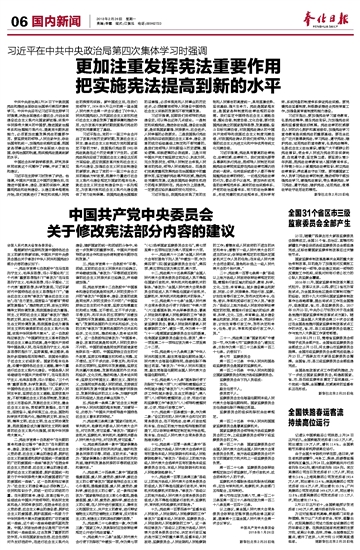 中国共产党中央委员会 关于修改宪法部分内容的建议