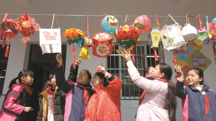 武岭小学的学生们欣赏亲手制作的灯笼 莼湖中心小学的学生们展示创意十足的手工作品 通讯员 马金山 新年贺卡、春联作品、窗花、中国结、春节手抄报,今年开学第一周,莼湖中心小学的学生们用创意十足的手工作品,交了他们的“寒假作业”,用自制手工品代替直接购买,记录了他们的别样新年。 2月27日,是“检验”学生寒假作业成果的日子。一到六年级的学生制作的各种不同种类的鱼灯琳琅满目,有纸灯、电子灯、纸扎灯、龟形灯。这些活灵活现的手工鱼灯让整个校园绽放着中国传统文化的民俗魅力。在学生年味作业展区,各种新年贺卡、春联作品、窗花、打中国结、春节小报,以及学生寒假完成制作的年味作业活动的照片,如拜年、社区活动、家务劳动等。那一份份精心制作、富有创意的作业犹如一道亮丽的风景扮靓了校园。 莼湖中心小学校长王昌杰介绍说,加强传统文化教育一直是该校特色之一。学校将民俗传统文化教育和非物质文化遗产保护项目结合起来,开展了形式多样的教育活动,今年寒假,为了让学生们度过一个富有“年味”的寒假,每名学生做了一份特殊的作业——“年文化”综合实践作业,让学生们通过书籍、网络、生活等方式了解和查找中国民俗,并以不同的形式展示出来,如:写春联、剪窗花、绘年画、做手抄报、做灯笼、猜灯谜等。此次别样的“寒假作业”体现了生活性,又激发了学生的兴趣和热情,丰富了学生的寒假生活。学生们通过废物利用制作手工花灯,既学习了民族文化,也锻炼了动手能力,益智又娱乐,树立健康文明的新风尚,更是让元宵节过得有滋有味。