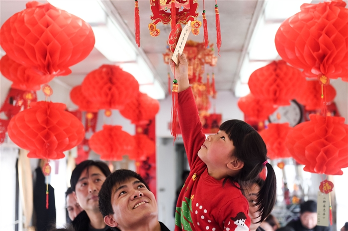 3月1日,在合肥客运段合肥至安庆K8451次列车上,陈佳逸小朋友在列车上猜灯谜。
