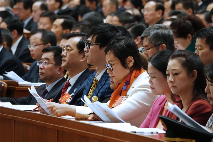 3月3日,中国人民政治协商会议第十三届全国委员会第一次会议在北京人民大会堂开幕。这是委员们在认真听会。新华社发